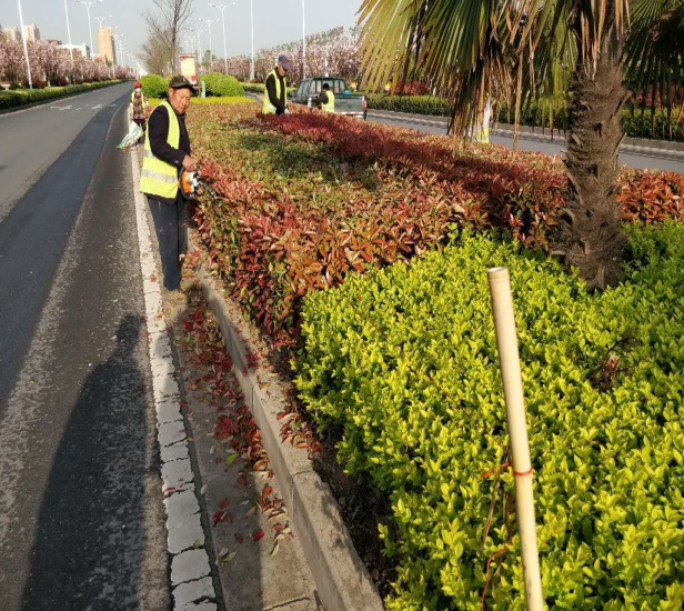 三是全面對(duì)管護(hù)區(qū)域內(nèi)的公園綠地、道路分隔帶、行道樹(shù)及道路交口綠化等公共綠地進(jìn)行巡查,及時(shí)清除雜草,有序修剪綠化苗木,并做好春季苗木施肥工作。
