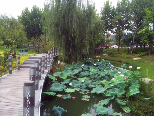 公園內(nèi)水面栽植荷花、睡蓮面積約1.2萬平方米,荷花花期在6月至9月間,睡蓮花期在6月至8月, 7月、8月均為盛放期。