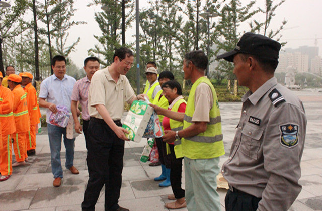 7月23日上午,園區(qū)黨工委委員、規(guī)劃建設局局長周原帶隊慰問了奮戰(zhàn)在一線的城市維護作業(yè)人員,給他們送上清涼、送上關愛。